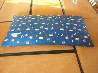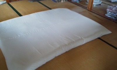 | 掛ふとんです。 目に見えない工程である、のしつけも重要です。 手際が悪いと綿は言う事を聞かなくなります。 |